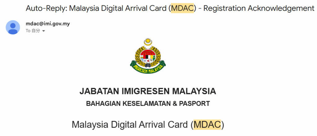 実は、メールが届かなくてもMDACが登録されていれば入国できた