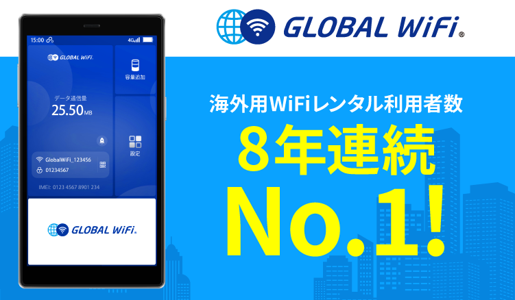 GLOBAL WiFiは、海外向けレンタルWiFiの定番サービスです。