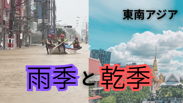 東南アジアは、日本と違って四季ではなく、雨季(モンスーン)と乾季という2つの季節で気候が大きく変わります。